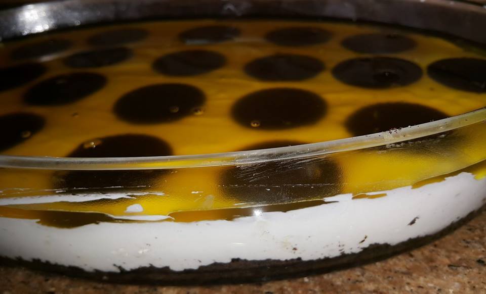 الطبقة التانية 2 دريم ويب وربع كاسة ماء متلج وكاسة حليب وكاسة سكر و2 لبن شمينت عالي الدسم والطبقة البيضا الي بتكون بالبسكويت بالمضرب نضربهم جيدا ثم نضعه فوق البسكويت ثم نرص البسكويت فوق الخليط الابيض ونضعه بتلاجة ساعة ثم نعمل بعد ذالك الطبقة الثالثة 2 كريم كرمل عليهم معلقة سكر و3 كوب ماء وعلى الغاز ونتركه يدفى ونضعه بالراحة على الخليط الأبيض وبتلاجة 3 ساعات وصحة وهنا .